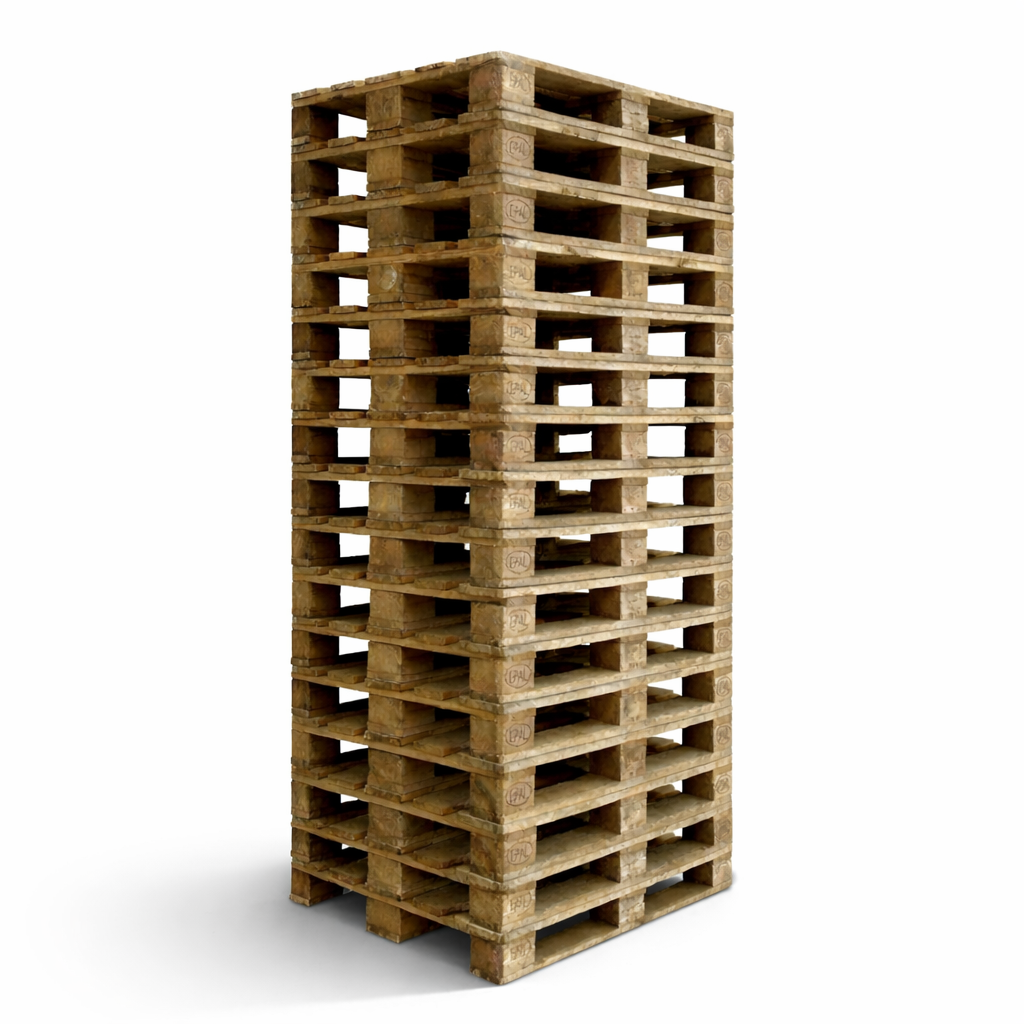 Våra EUR-pallar är tillverkade av återvunnet trä och utgör en stark och praktisk lösning för både lager och transport. De är en klassisk standard inom pallhantering och lämpar sig väl för företag som behöver en driftsäker lösning i vardagen. Träpallar är kända för sin robusta konstruktion och fungerar bra i många olika arbetssituationer.