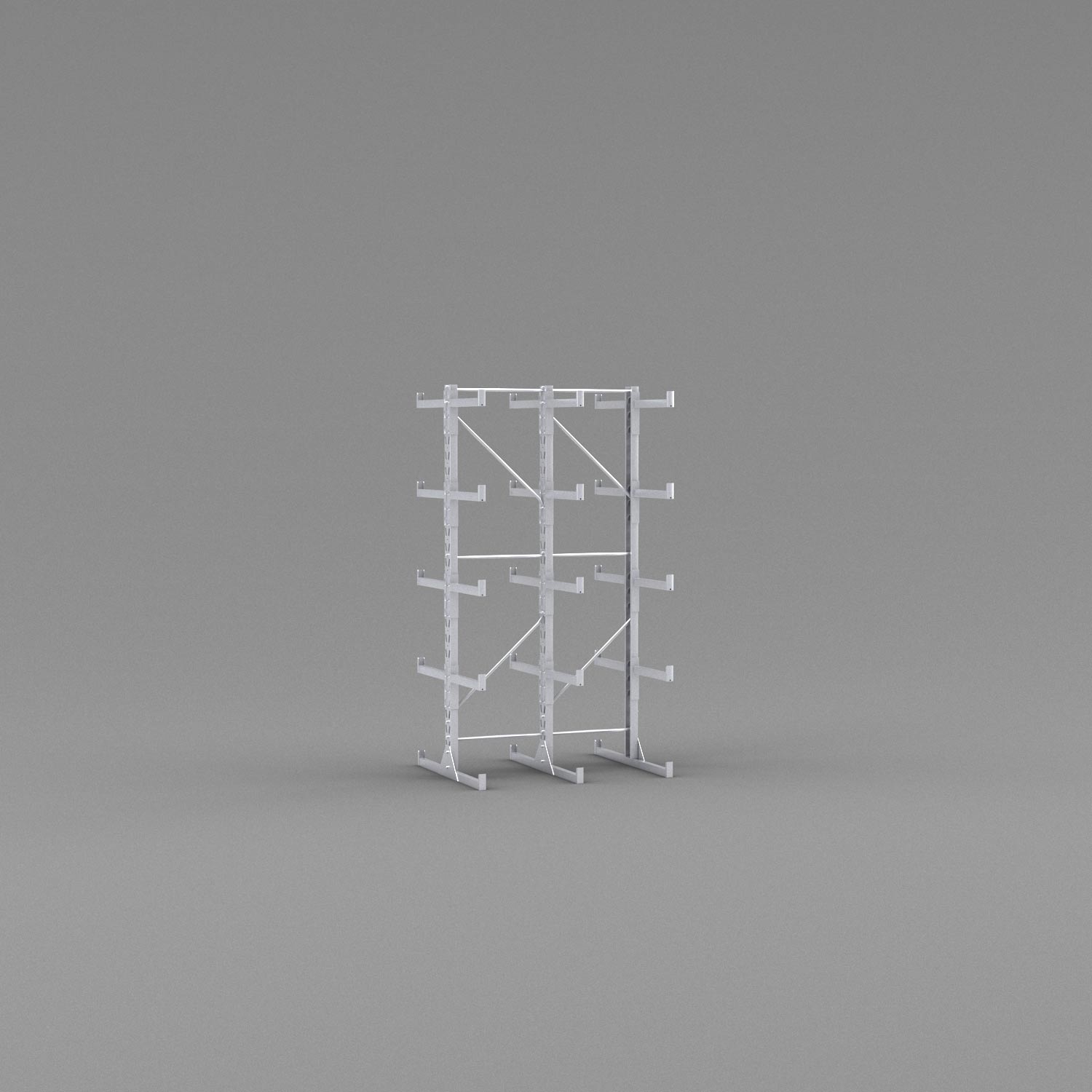 När det gäller säkerheten är inget lämnat åt slumpen i den här hyllan. Den är byggd i galvaniserat stål för att motstå slitage och rost och de kraftiga fötterna i botten kan samtidigt användas som bärlag. På varje gren sitter ändstopp på 5 cm för att undvika att godset faller ner och i stammen sitter korsstag som håller ihop kolonnerna och ger maximal stabilitet.