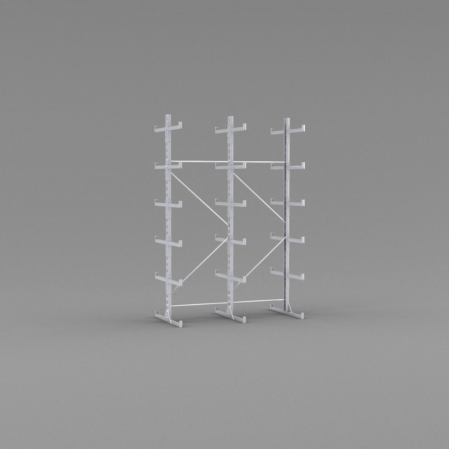 När det gäller säkerheten är inget lämnat åt slumpen i den här hyllan. Den är byggd i galvaniserat stål för att motstå slitage och rost och de kraftiga fötterna i botten kan samtidigt användas som bärlag. På varje gren sitter ändstopp på 5 cm för att undvika att godset faller ner och i stammen sitter korsstag som håller ihop kolonnerna och ger maximal stabilitet.