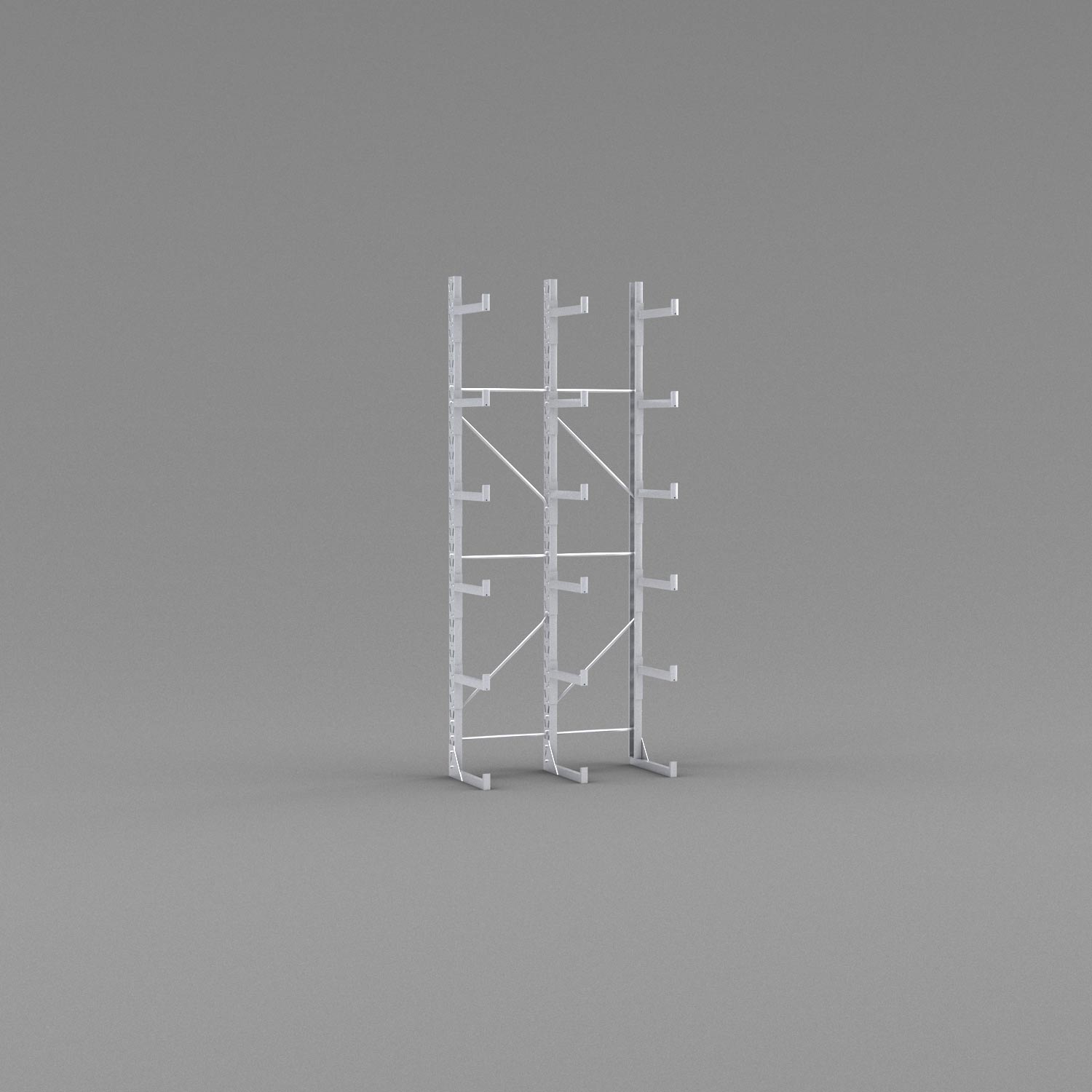 När det gäller säkerheten är inget lämnat åt slumpen i den här hyllan. Den är byggd i galvaniserat stål för att motstå slitage och rost och de kraftiga fötterna i botten kan samtidigt användas som bärlag. På varje gren sitter ändstopp på 5 cm för att undvika att godset faller ner och i stammen sitter korsstag som håller ihop kolonnerna och ger maximal stabilitet.