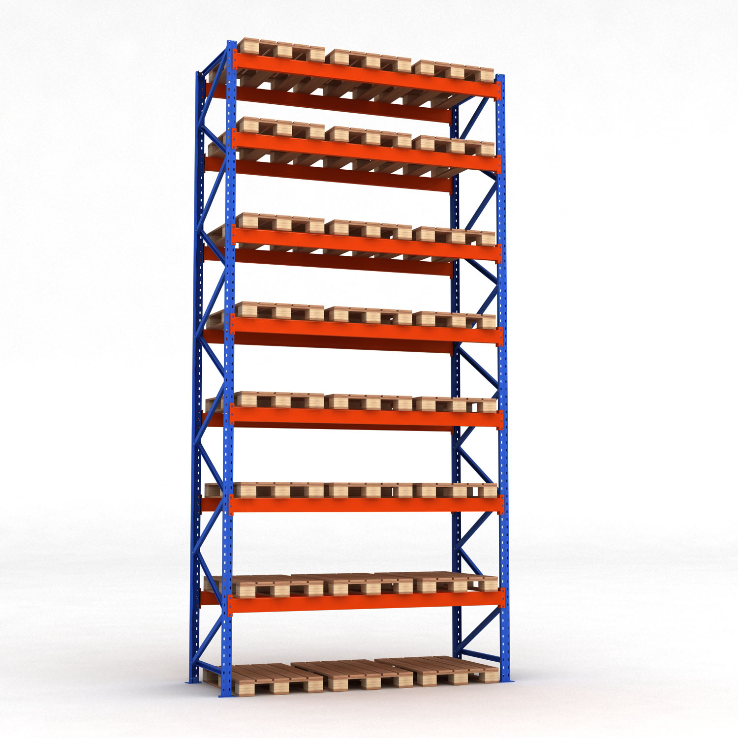 Våra pallställ är tillverkade i kraftigt pullverlackat stål och är designade för att klara av extremt hög belastning. Pallställen har en bärkraft på 3 ton per bärplan och en maxbelastning per pallställ på 20 ton. Detta pallställ består av 1 fack med totalt 24 euro-pallplatser.