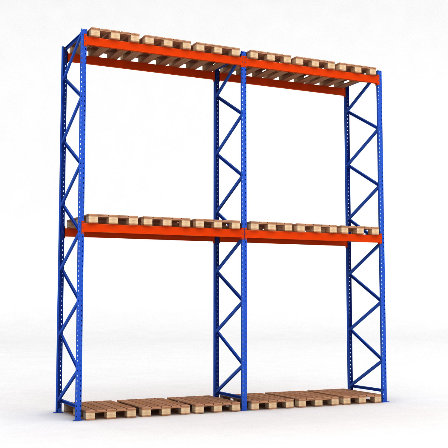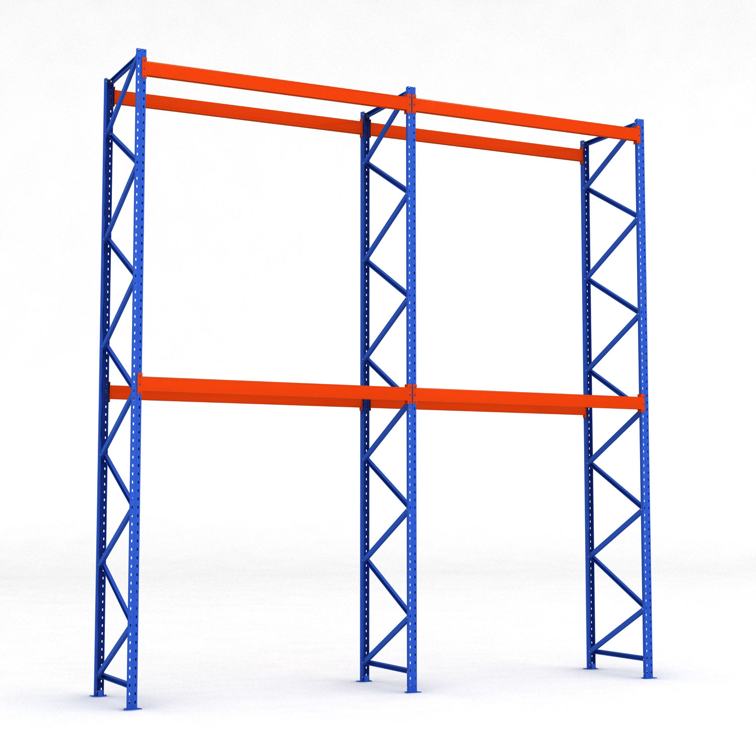 Våra pallställ är tillverkade i kraftigt pullverlackat stål och är designade för att klara av extremt hög belastning. Pallställen har en bärkraft på 3 ton per bärplan och en maxbelastning per pallställ på 20 ton. Detta pallställ består av 2 fack med totalt 18 euro-pallplatser.
