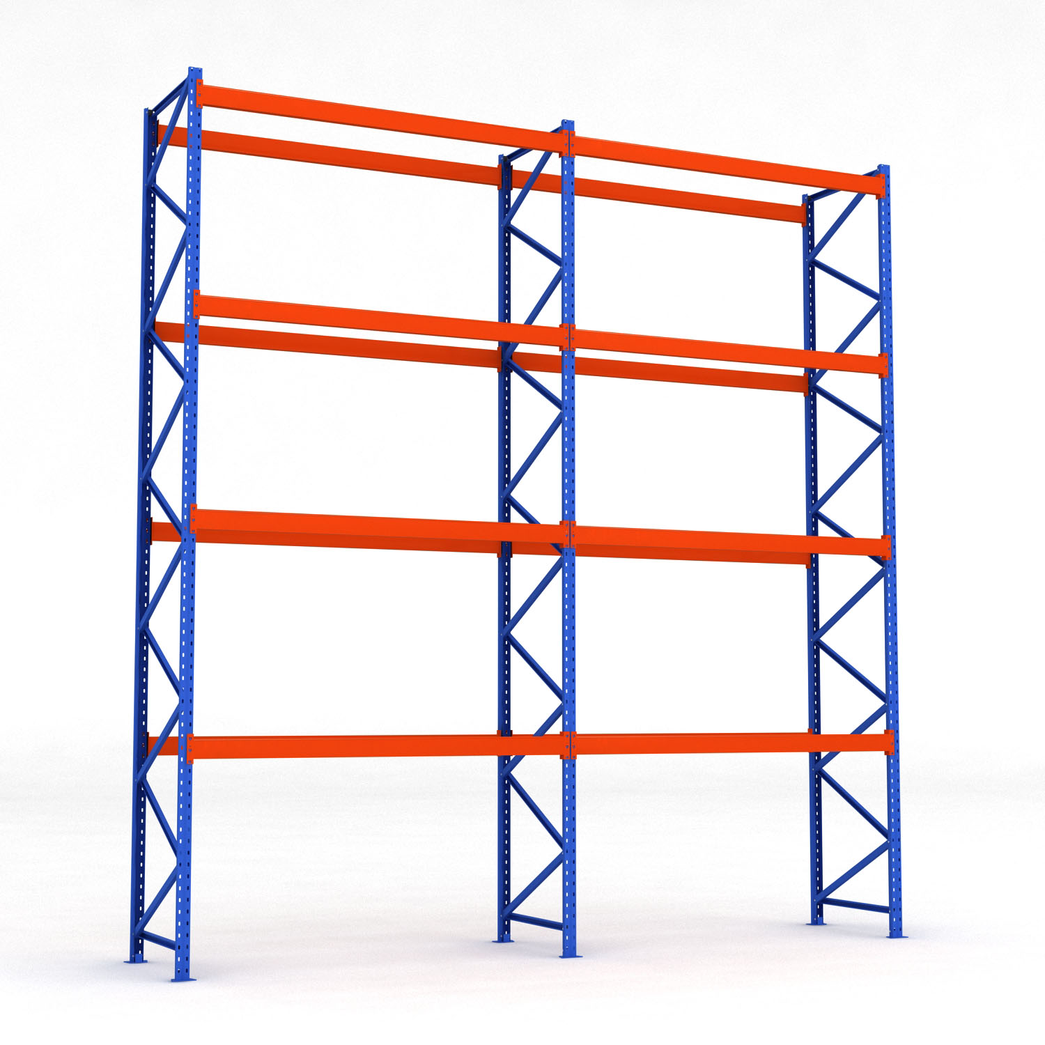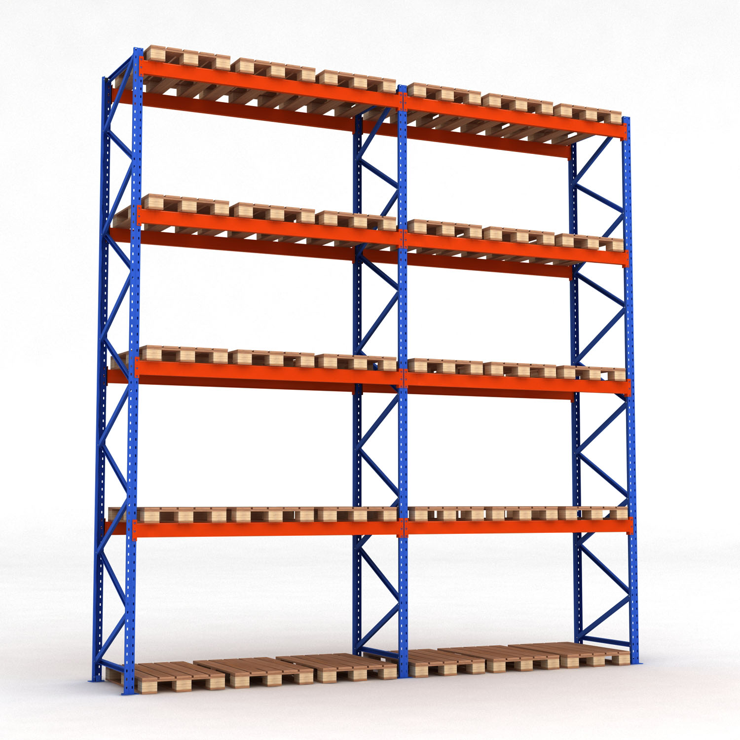 Våra pallställ är tillverkade i kraftigt pullverlackat stål och är designade för att klara av extremt hög belastning. Pallställen har en bärkraft på 3 ton per bärplan och en maxbelastning per pallställ på 20 ton. Detta pallställ består av 2 fack med totalt 30 euro-pallplatser.