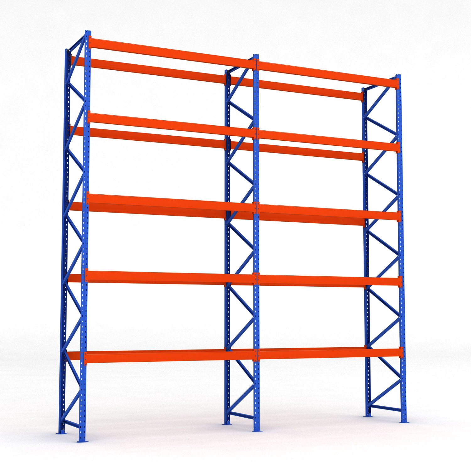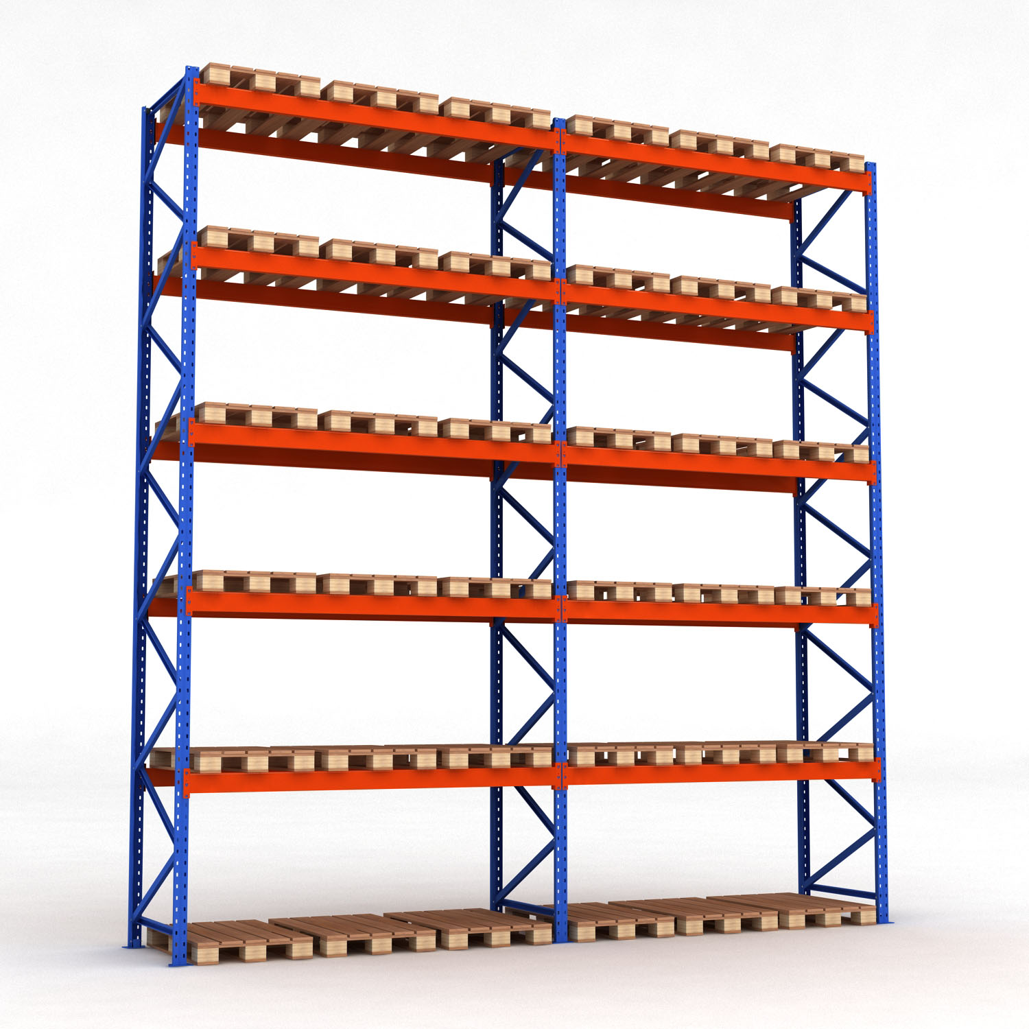 Våra pallställ är tillverkade i kraftigt pullverlackat stål och är designade för att klara av extremt hög belastning. Pallställen har en bärkraft på 3 ton per bärplan och en maxbelastning per pallställ på 20 ton. Detta pallställ består av 2 fack med totalt 36 euro-pallplatser.