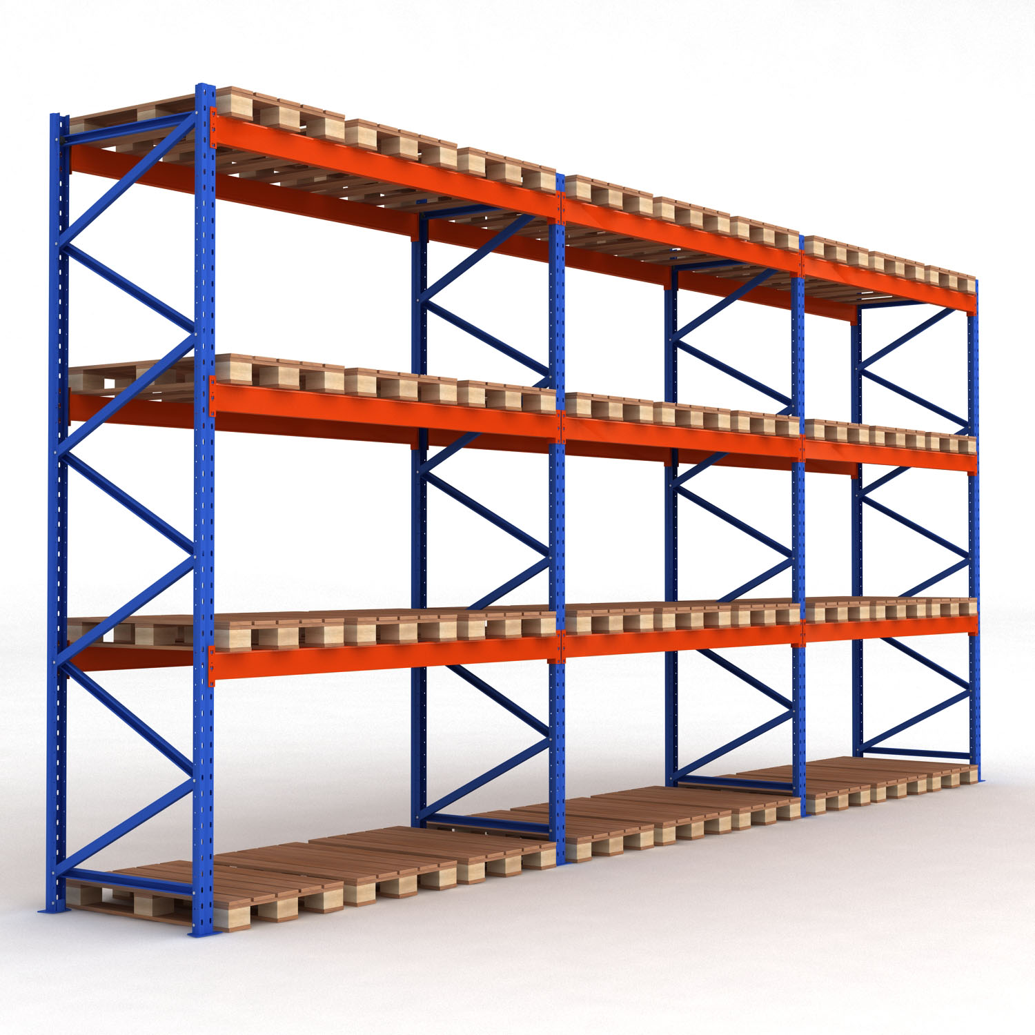 Våra pallställ är tillverkade i kraftigt pullverlackat stål och är designade för att klara av extremt hög belastning. Pallställen har en bärkraft på 3 ton per bärplan och en maxbelastning per pallställ på 13 ton. Detta pallställ består av 3 fack med totalt 36 euro-pallplatser.