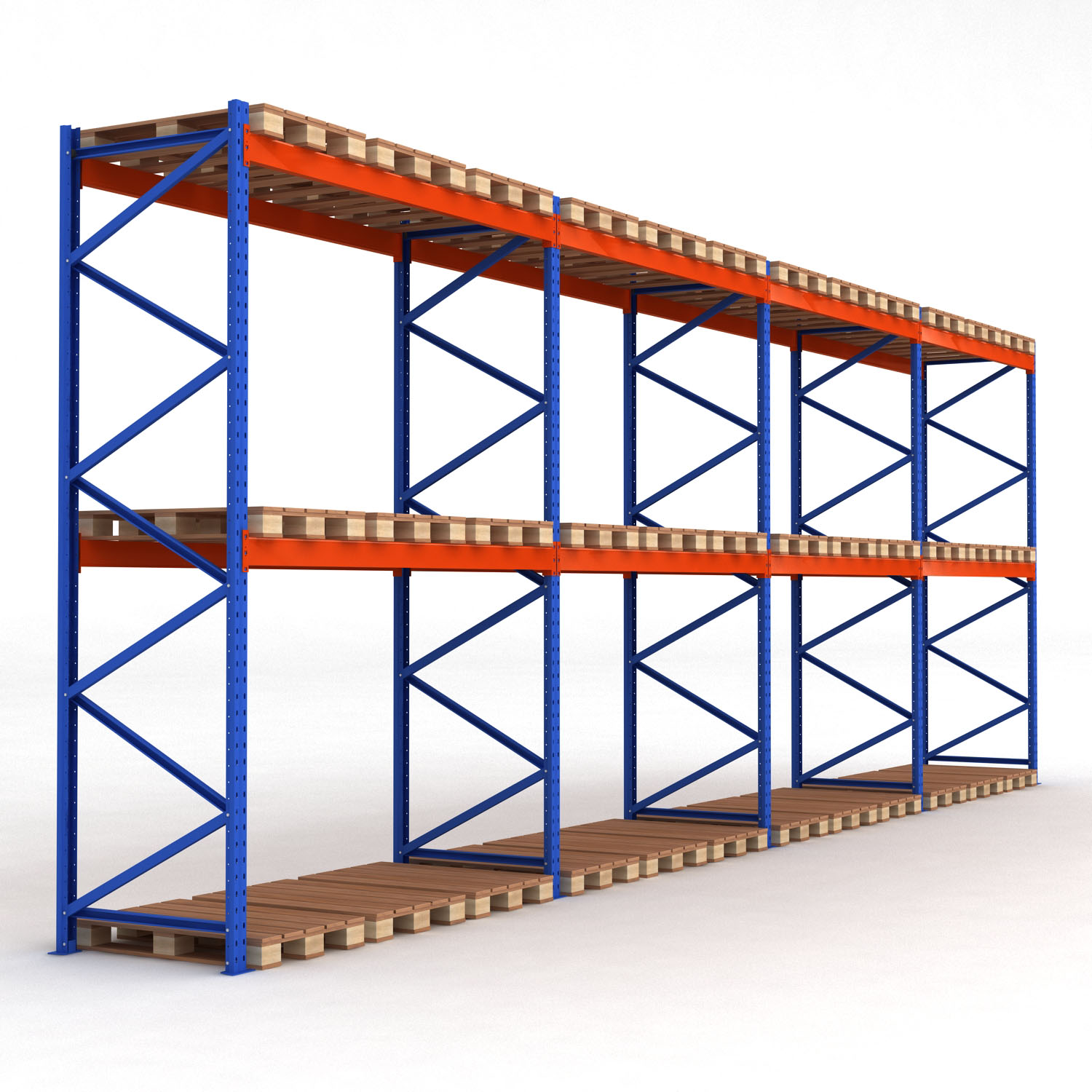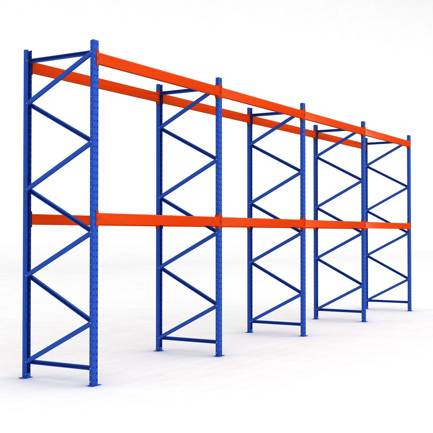 Våra pallställ är tillverkade i kraftigt pullverlackat stål och är designade för att klara av extremt hög belastning. Pallställen har en bärkraft på 3 ton per bärplan och en maxbelastning per pallställ på 13 ton. Detta pallställ består av 4 fack med totalt 36 euro-pallplatser.