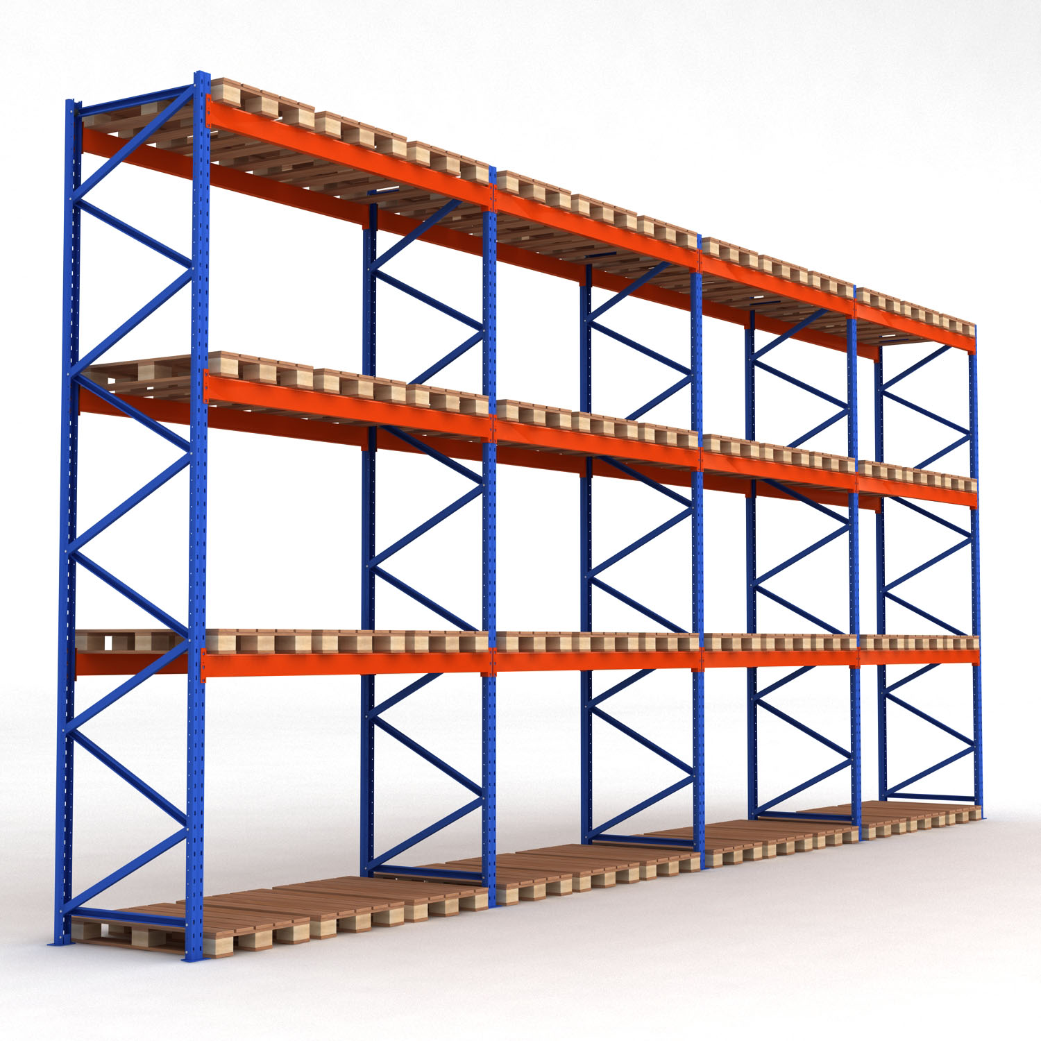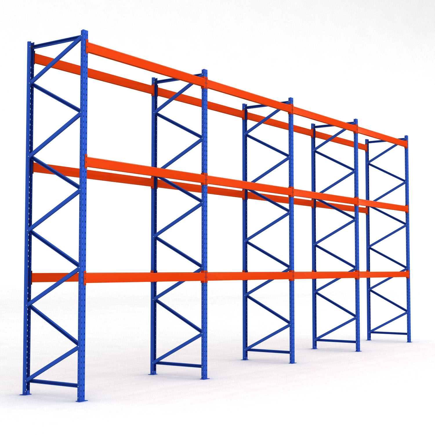 Våra pallställ är tillverkade i kraftigt pullverlackat stål och är designade för att klara av extremt hög belastning. Pallställen har en bärkraft på 3 ton per bärplan och en maxbelastning per pallställ på 16 ton. Detta pallställ består av 4 fack med totalt 48 euro-pallplatser.