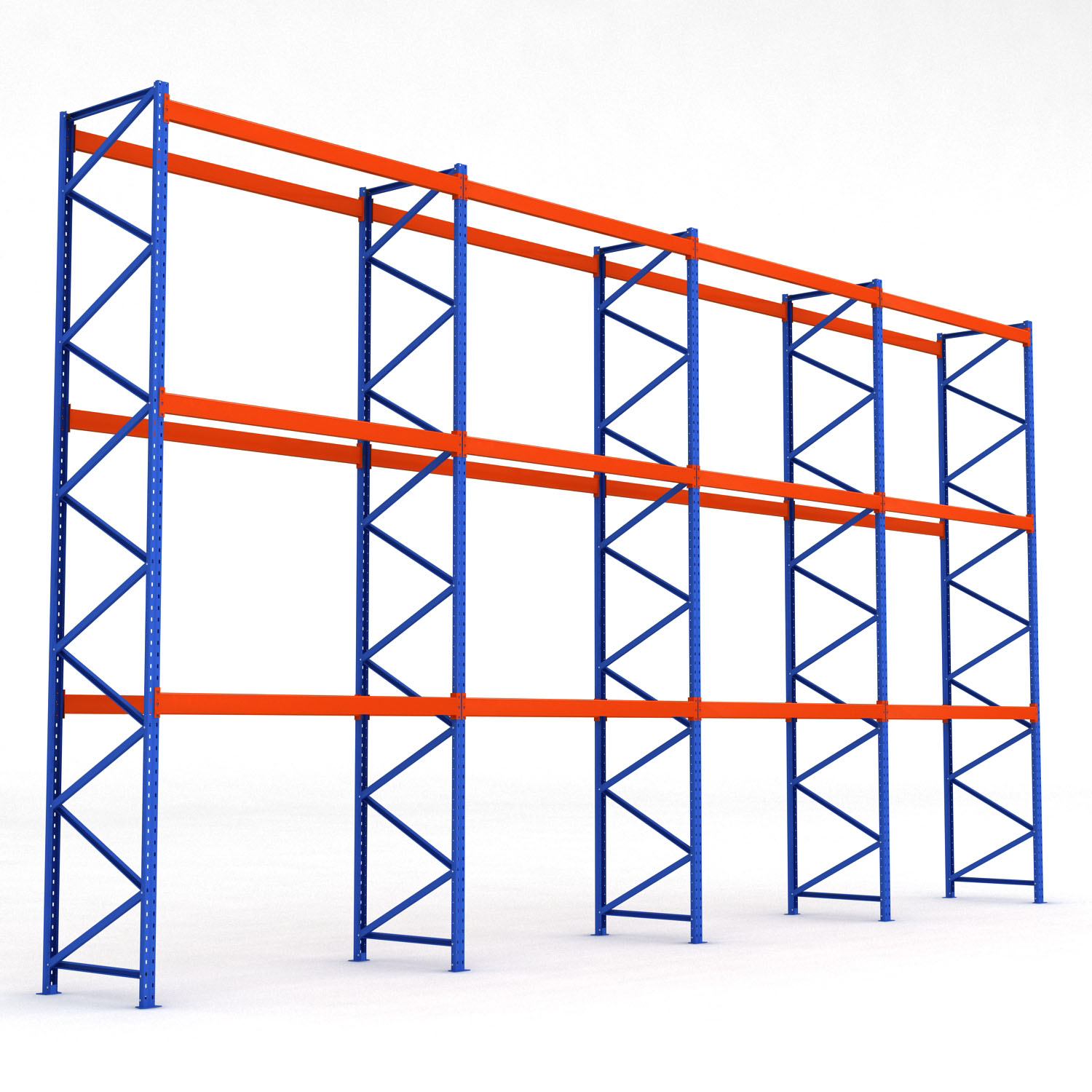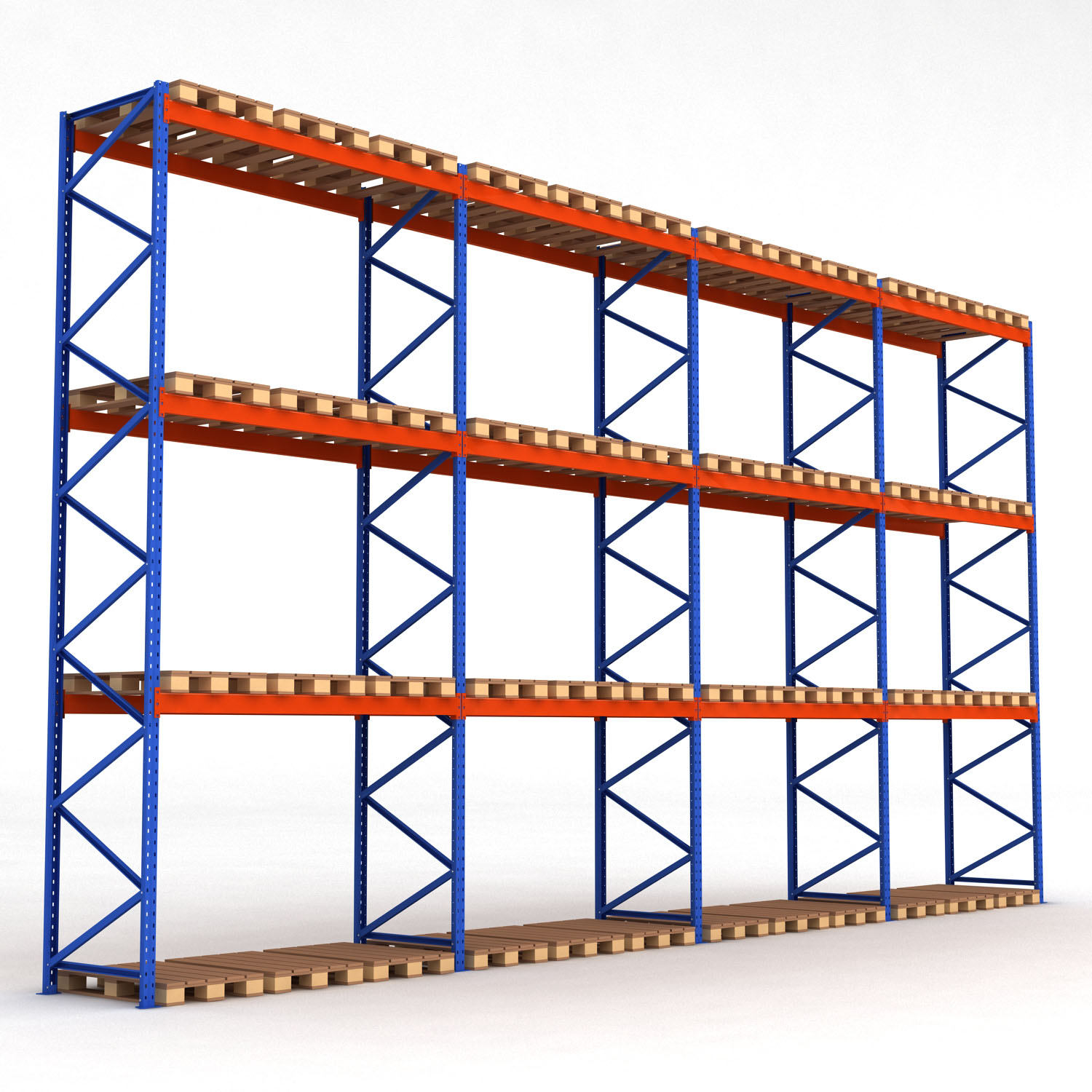 Våra pallställ är tillverkade i kraftigt pullverlackat stål och är designade för att klara av extremt hög belastning. Pallställen har en bärkraft på 3 ton per bärplan och en maxbelastning per pallställ på 20 ton. Detta pallställ består av 4 fack med totalt 48 euro-pallplatser.