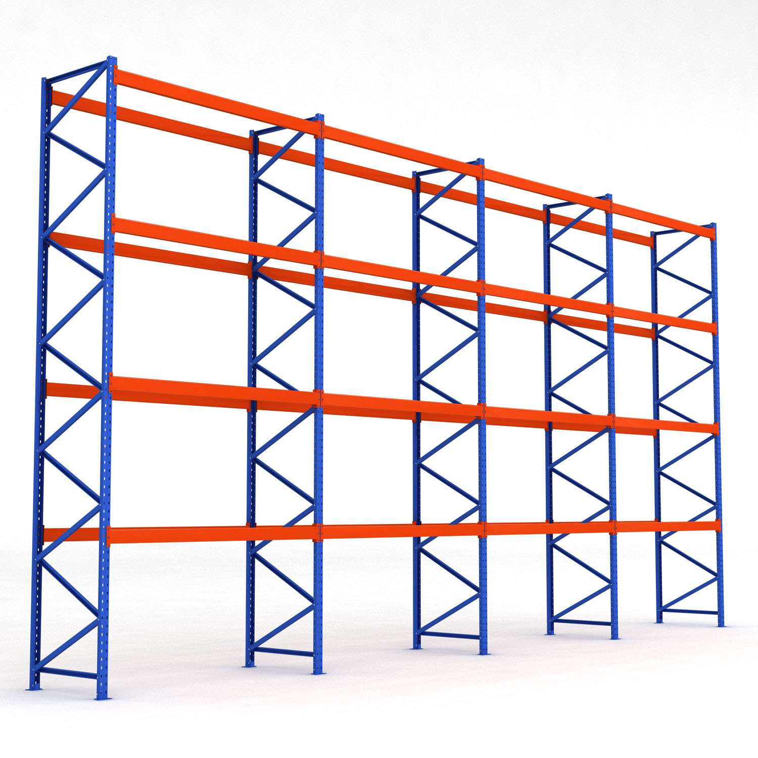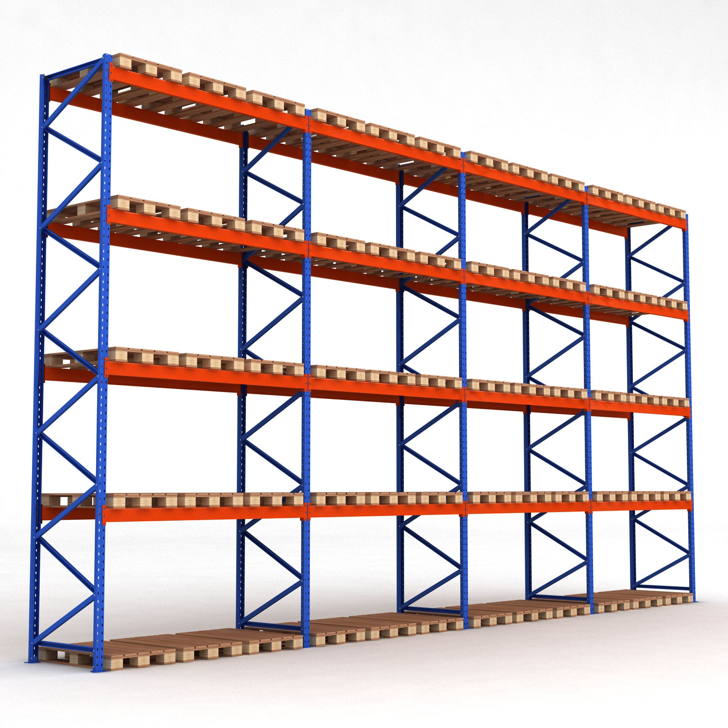 Våra pallställ är tillverkade i kraftigt pullverlackat stål och är designade för att klara av extremt hög belastning. Pallställen har en bärkraft på 3 ton per bärplan och en maxbelastning per pallställ på 20 ton. Detta pallställ består av 4 fack med totalt 60 euro-pallplatser.