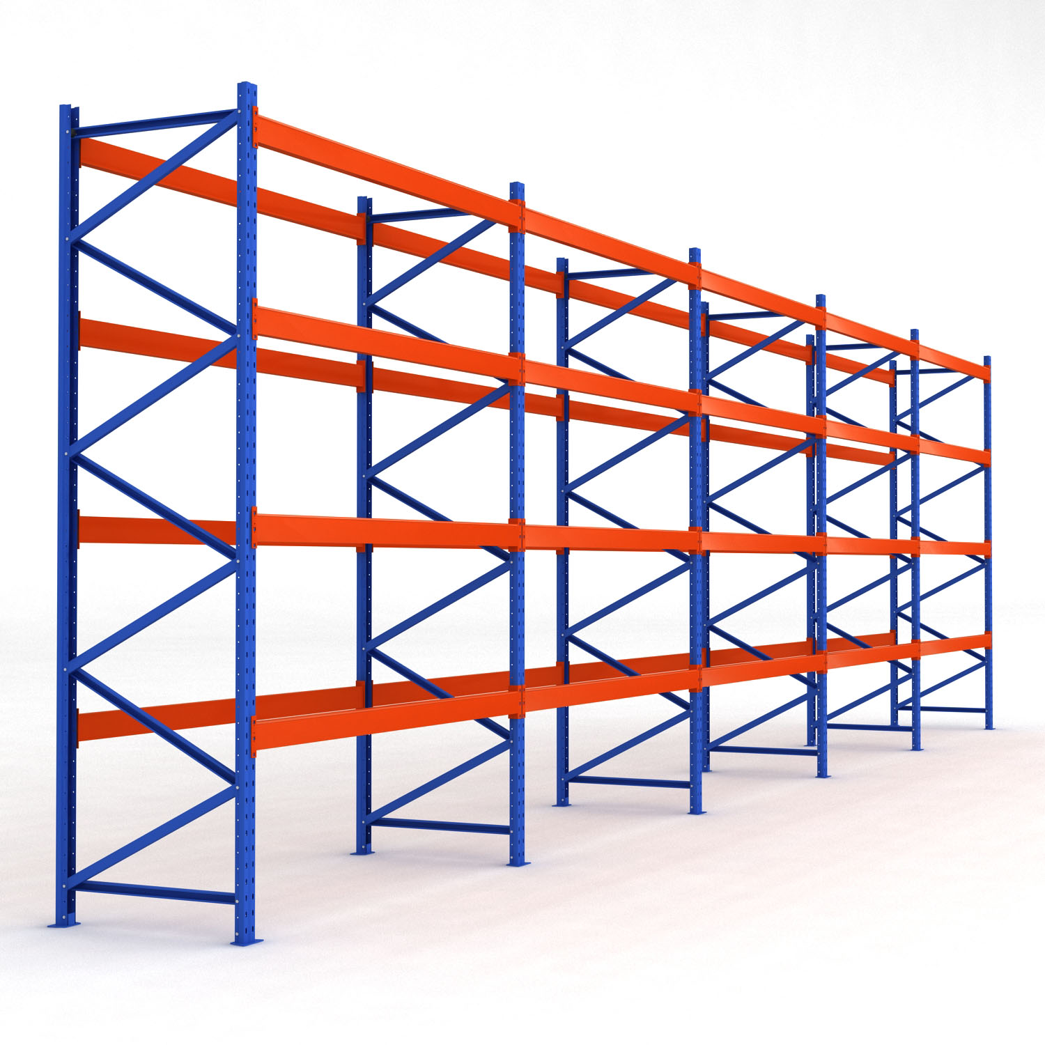 Stället är pulverlackat i kraftig industriell kvalitet som skyddar stålet mot rost. Vi har valt att pulverlacka våra ställ i färgerna blått (RAL:5015) och orange (RAL:2004) för att undvika att man råkar missa dem när man kör truck.