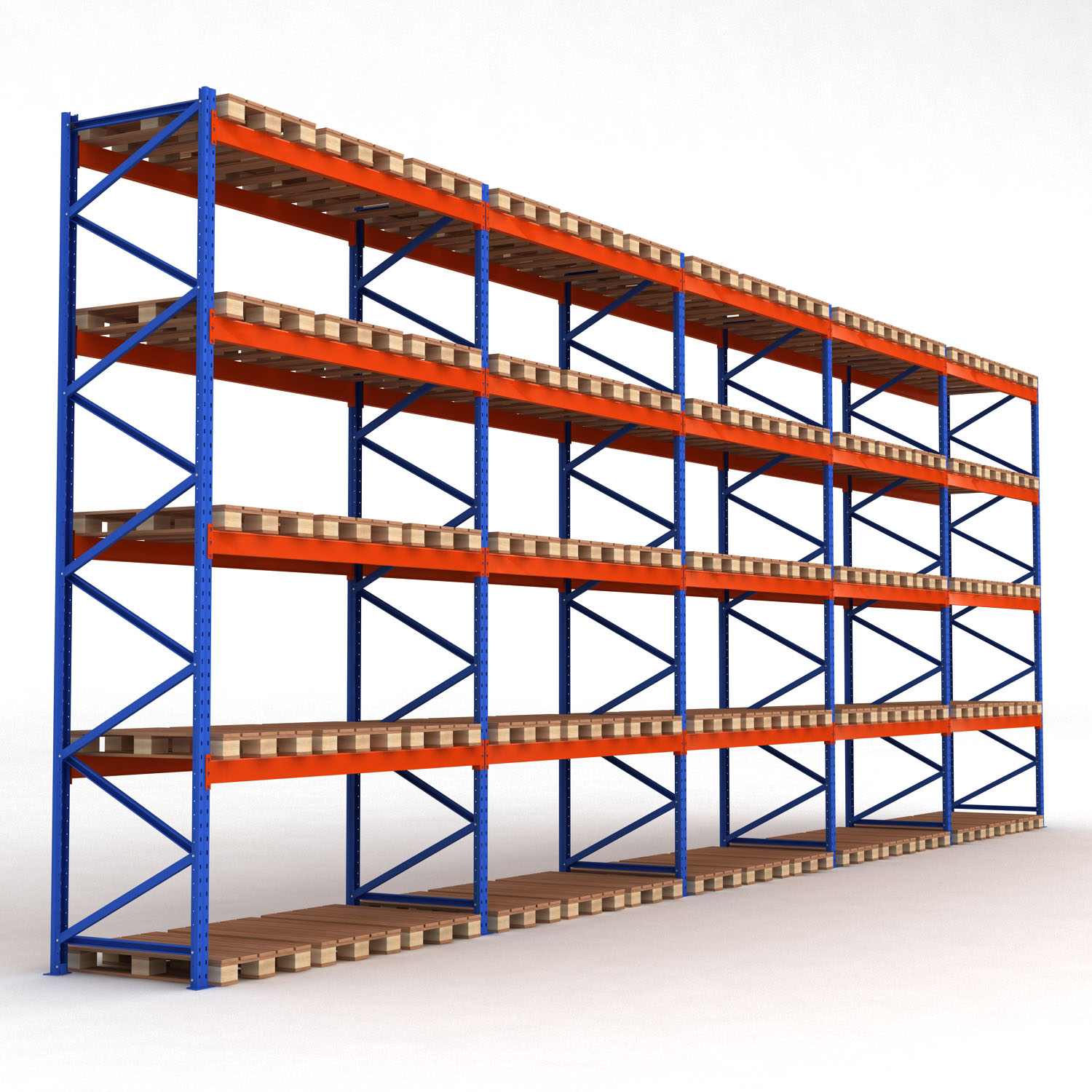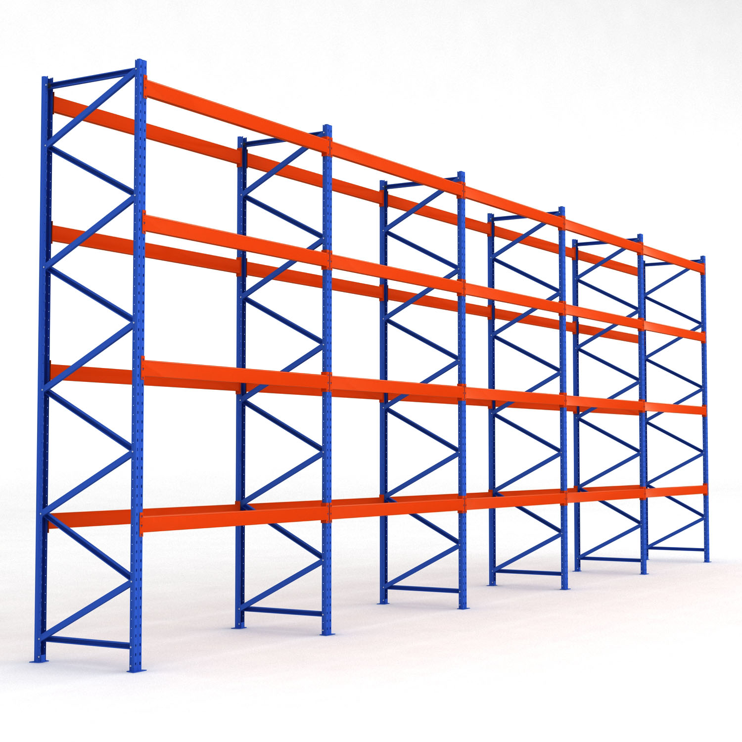 Våra pallställ är tillverkade i kraftigt pullverlackat stål och är designade för att klara av extremt hög belastning. Pallställen har en bärkraft på 3 ton per bärplan och en maxbelastning per pallställ på 16 ton. Detta pallställ består av 5 fack med totalt 75 euro-pallplatser.