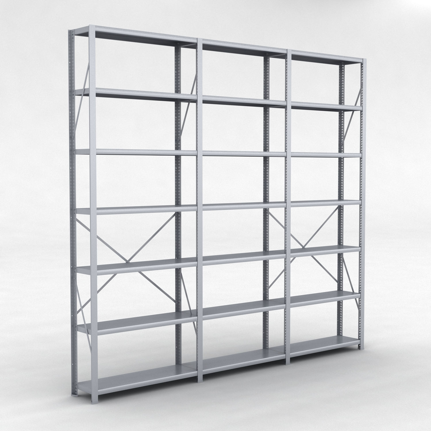 - 8 x hyllkolonner i galvaniserat stål i 280 cm längd.