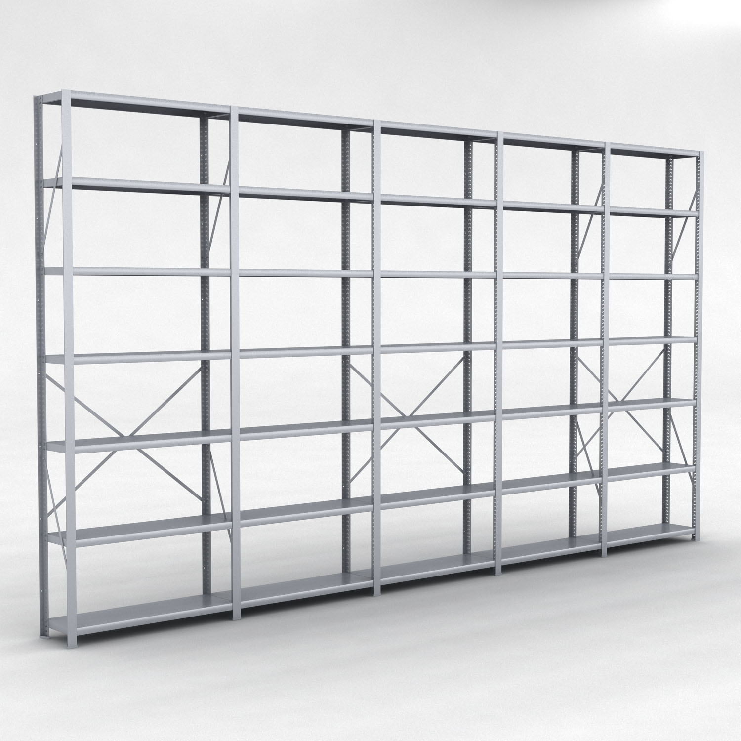 - 72 x hyllkolonner i galvaniserat stål i 280 cm längd.
