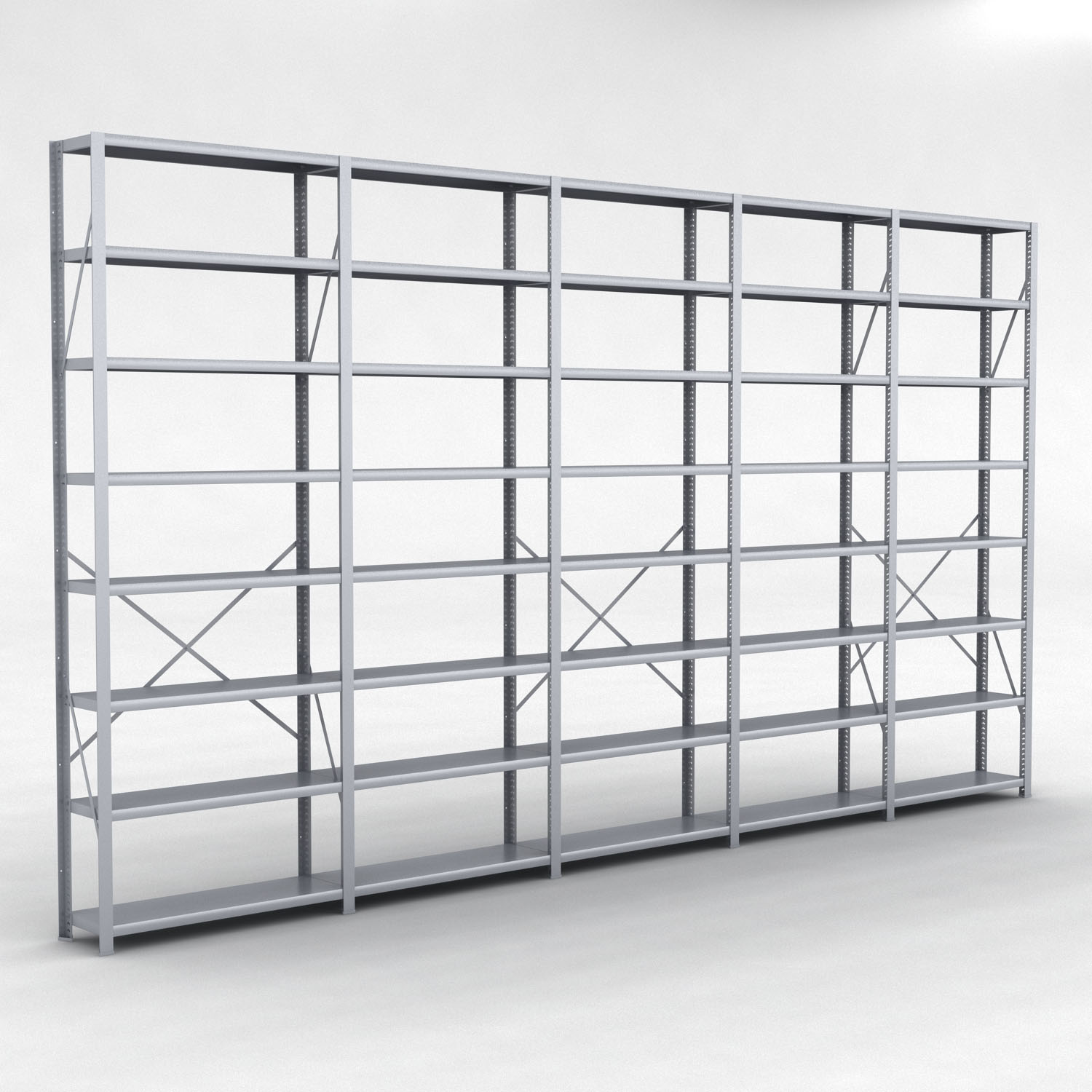 - 84 x hyllkolonner i galvaniserat stål i 280 cm längd.