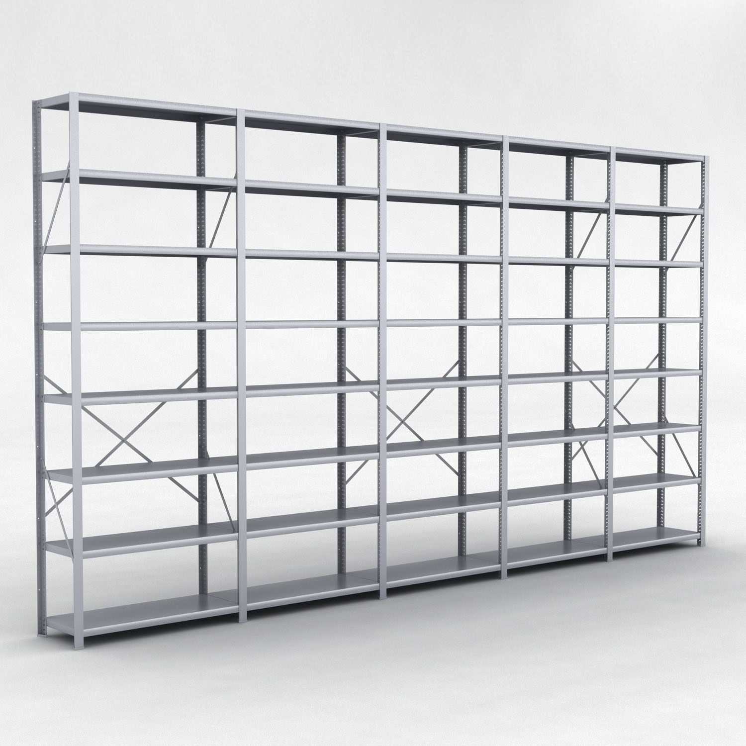 - 84 x hyllkolonner i galvaniserat stål i 280 cm längd.