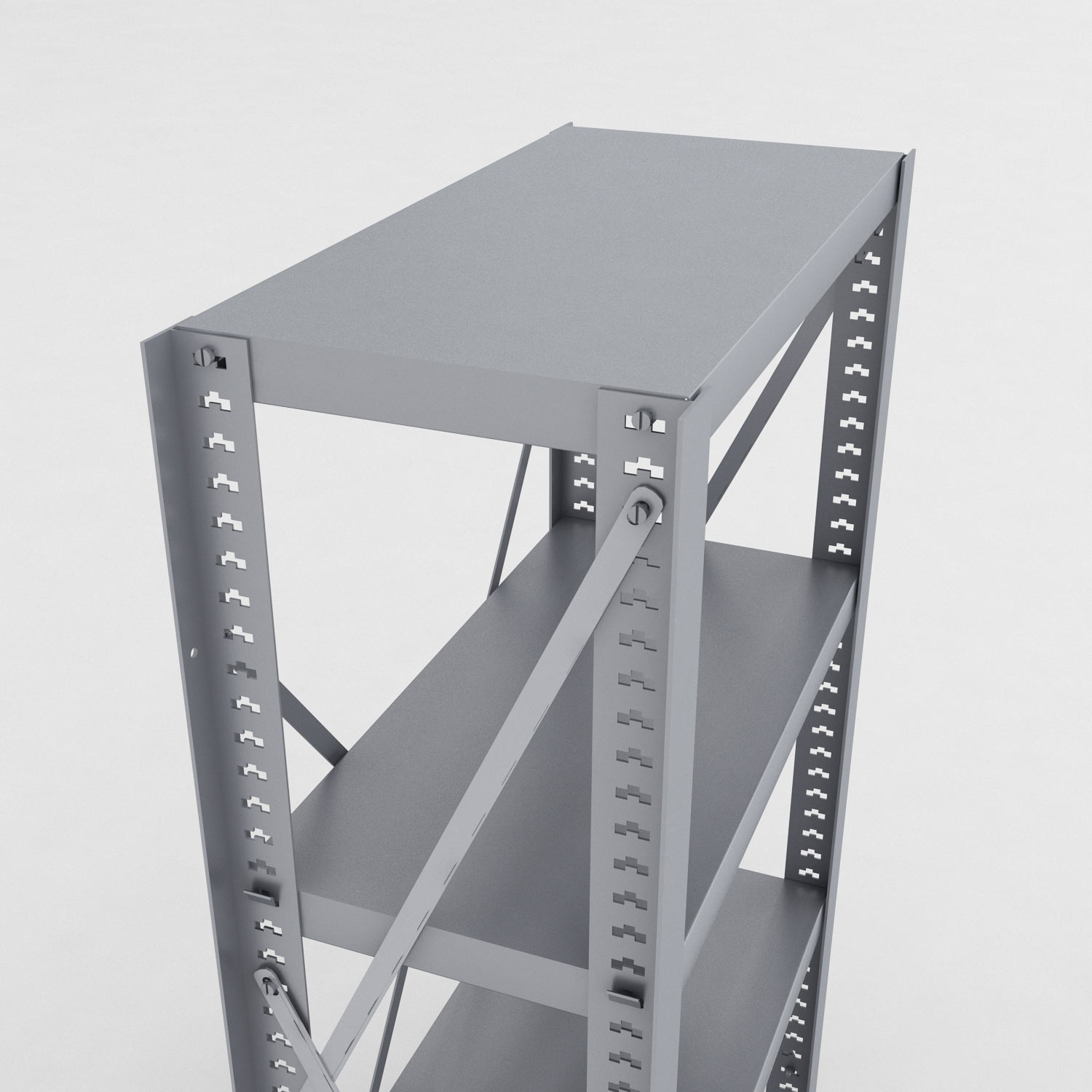 Därför är flexbilitet ett av orden som bäst beskriver den här stålhyllan. Med sin höjdjustering och fria montering av hyllor kan du själv bygga din egen kombination. Hyllorna kan flyttas upp och ner i intervaller om 2,5 cm utan verktyg. På så vis kan du anpassa hyllan precis efter dina behov. Justera höjden så hyllan passar där du vill ha den så du kan optimera den på ditt sätt. Denna stålhylla är optimal för dig som vill ha ordning och reda i ditt lager med minimal platsförlust.