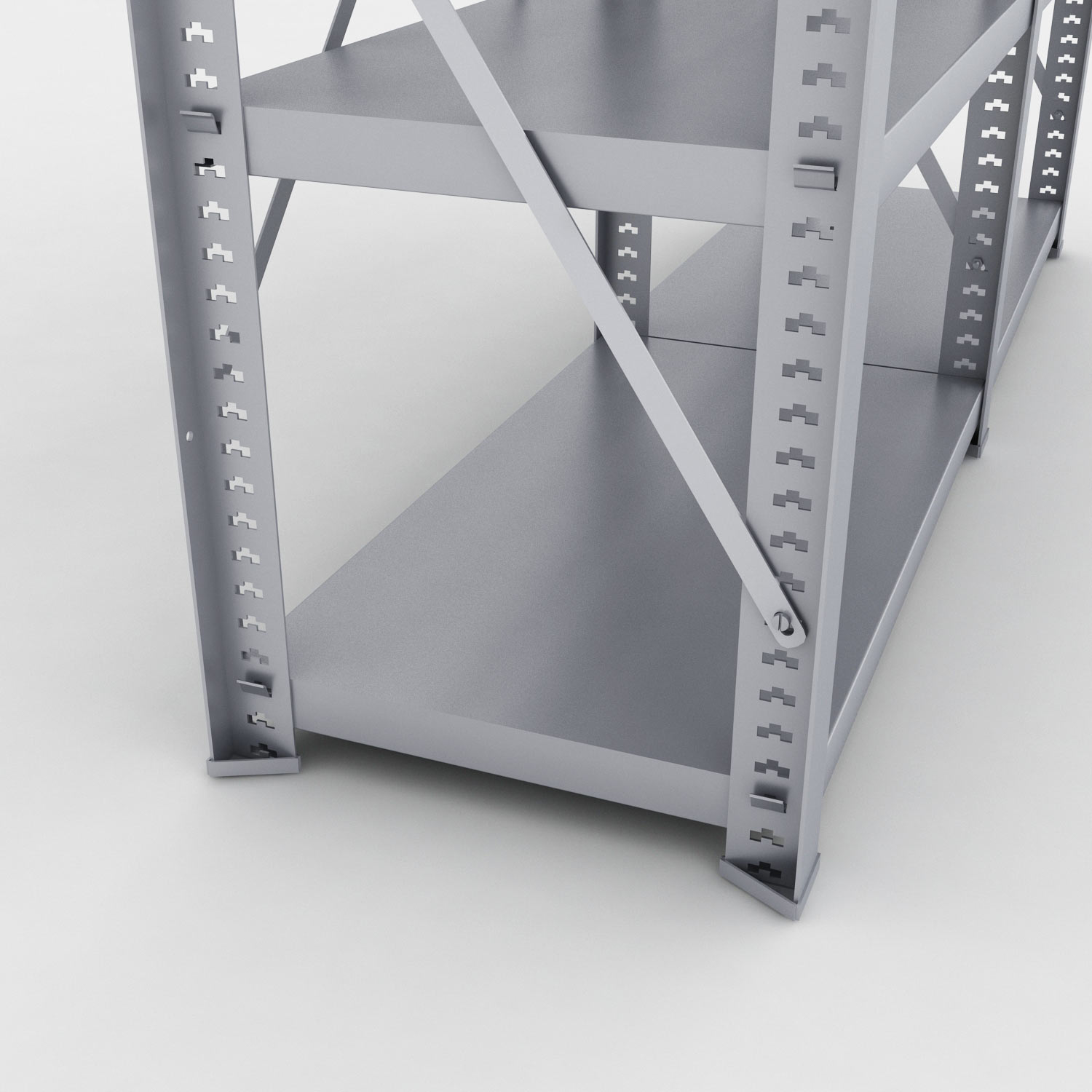 Därför är flexbilitet ett av orden som bäst beskriver den här stålhyllan. Med sin höjdjustering och fria montering av hyllor kan du själv bygga din egen kombination. Hyllorna kan flyttas upp och ner i intervaller om 2,5 cm utan verktyg. På så vis kan du anpassa hyllan precis efter dina behov. Justera höjden så hyllan passar där du vill ha den så du kan optimera den på ditt sätt. Denna stålhylla är optimal för dig som vill ha ordning och reda i ditt lager med minimal platsförlust.