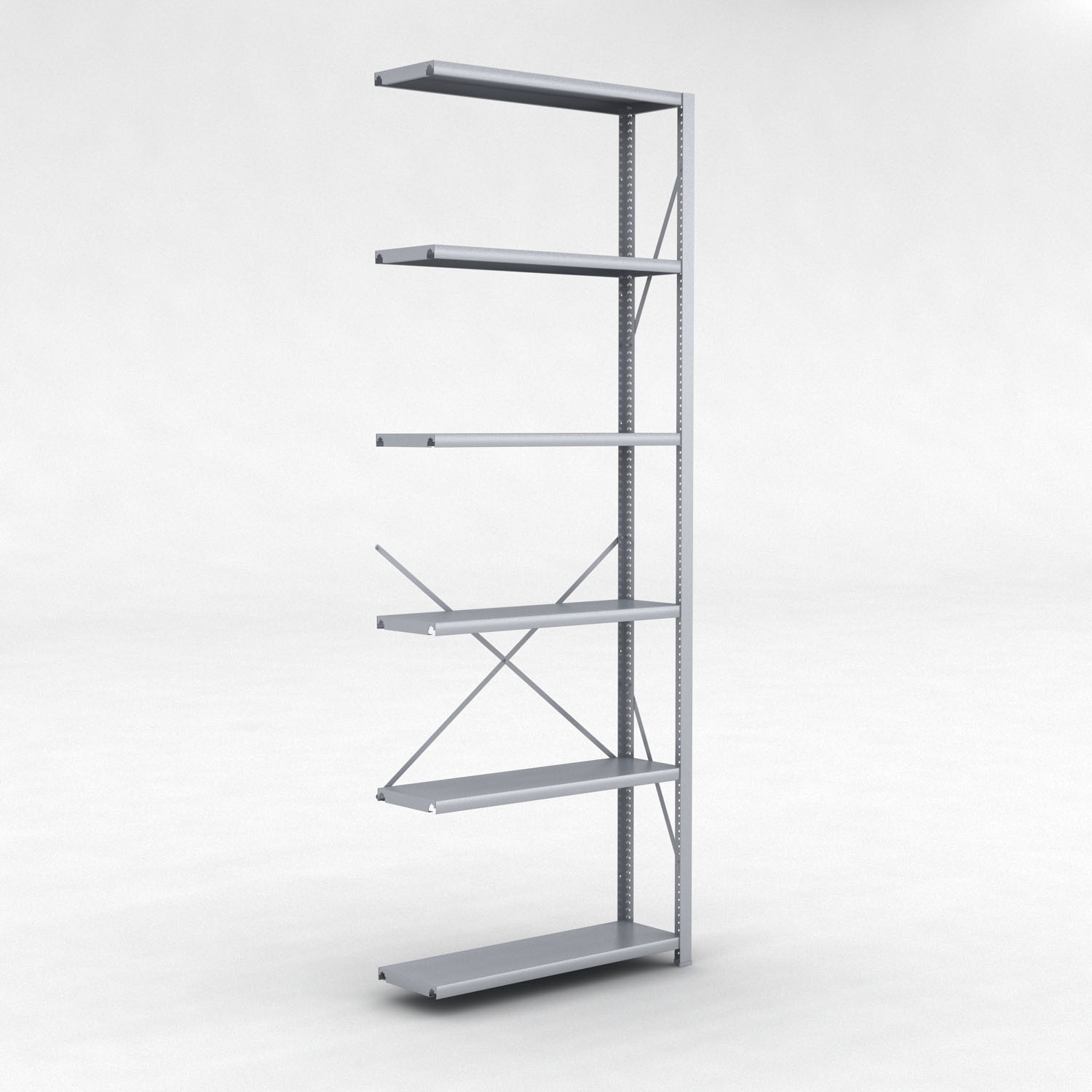 - 4 x hyllkolonner i galvaniserat stål i 280 cm längd.
