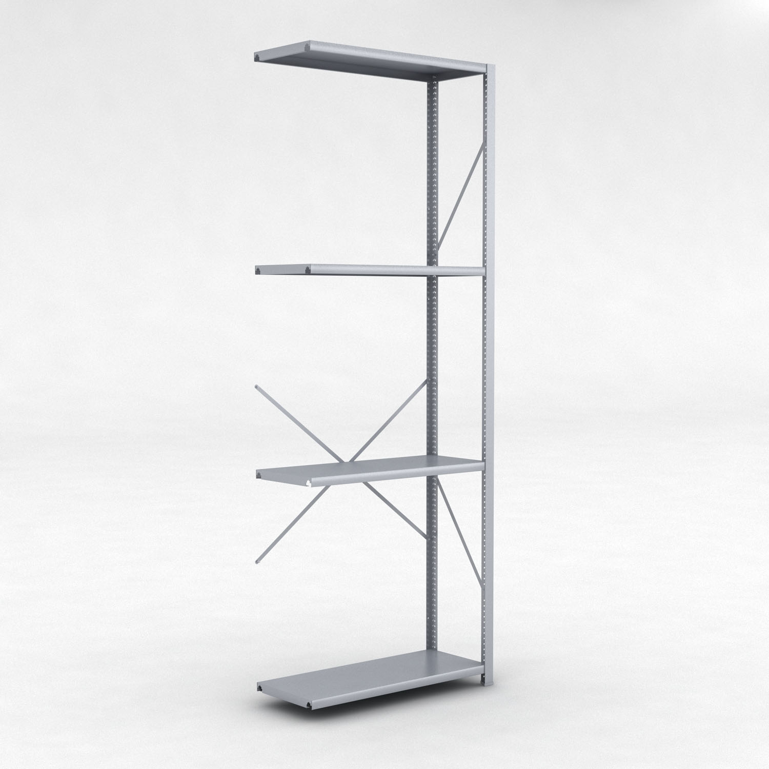 - 4 x hyllkolonner i galvaniserat stål i 280 cm längd.