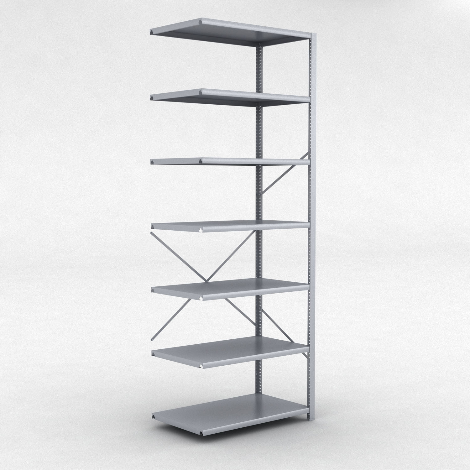 - 4 x hyllkolonner i galvaniserat stål i 280 cm längd.