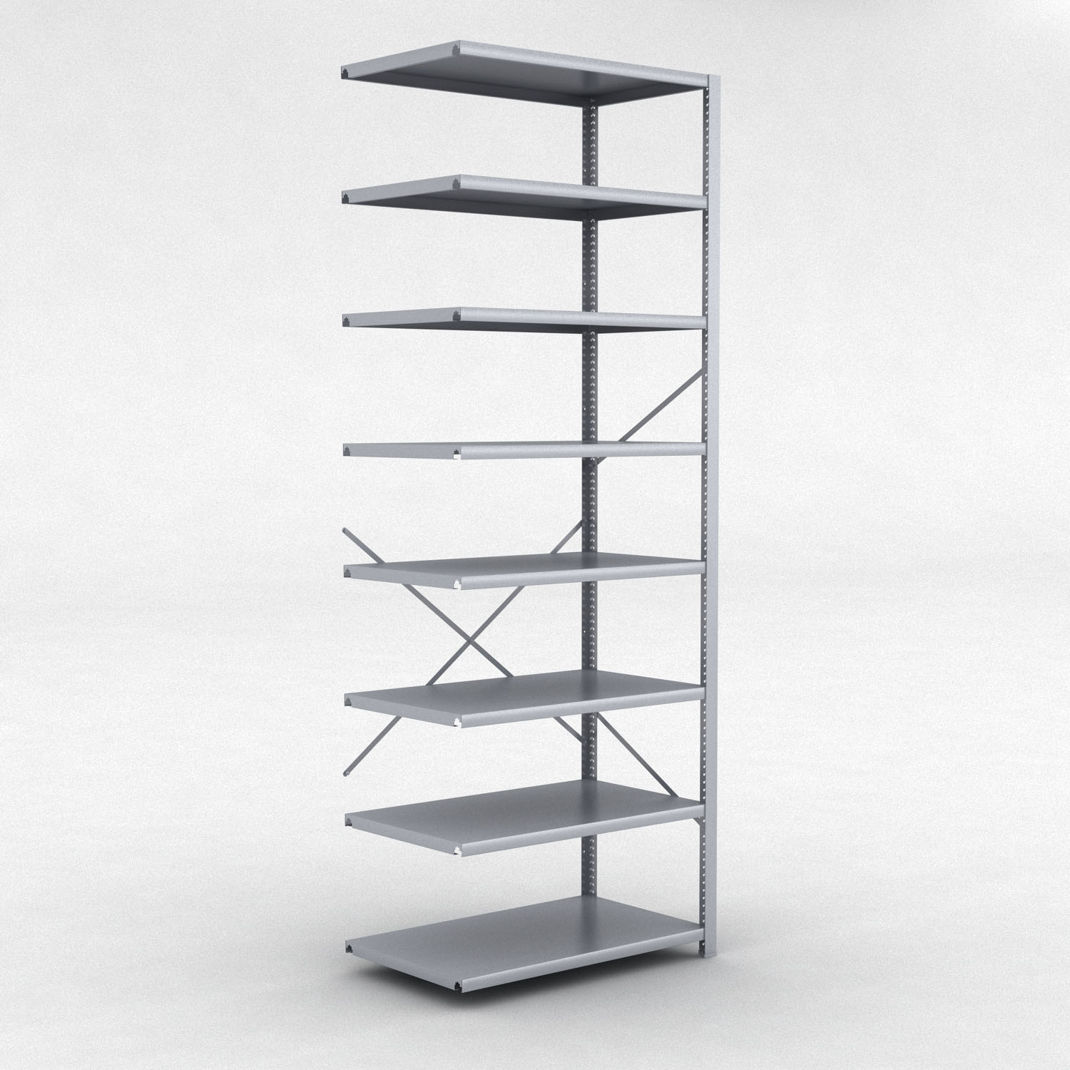- 4 x hyllkolonner i galvaniserat stål i 280 cm längd.