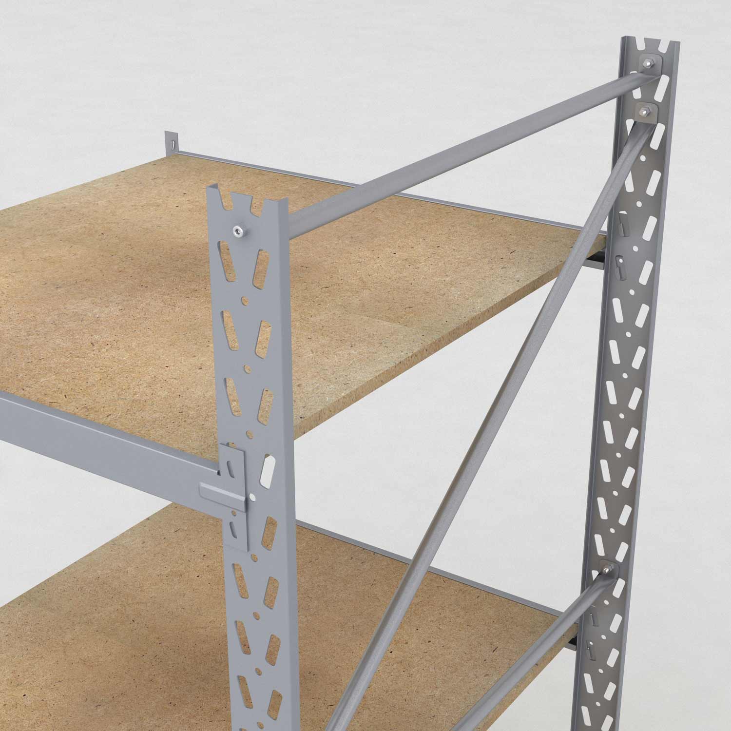 De flyttbara hyllplanen består av spånskivor med en tjocklek på 19 mm. Dessa är särskilt lämpliga för nätbutiker eller plocklager där man önskar minimal rengöring av hyllorna. Dessutom säkrar hyllytan att produkterna har bra grepp och står säkert jämfört med många andra lagerhyllor.